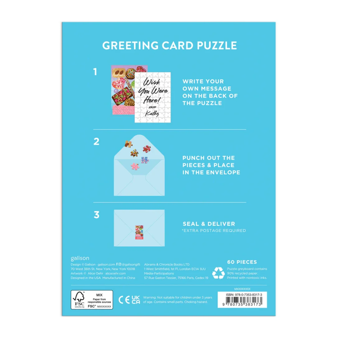 PUZZLE GREETING CARD – The Sweets For The Sweet Greeting Card Puzzle from Galison is the perfect accompaniment to any gift or present. A gorgeous puzzle design on one side and room on the back to write a message, you can break up the puzzle and send it to family or friends who will then assemble and read the precious message.