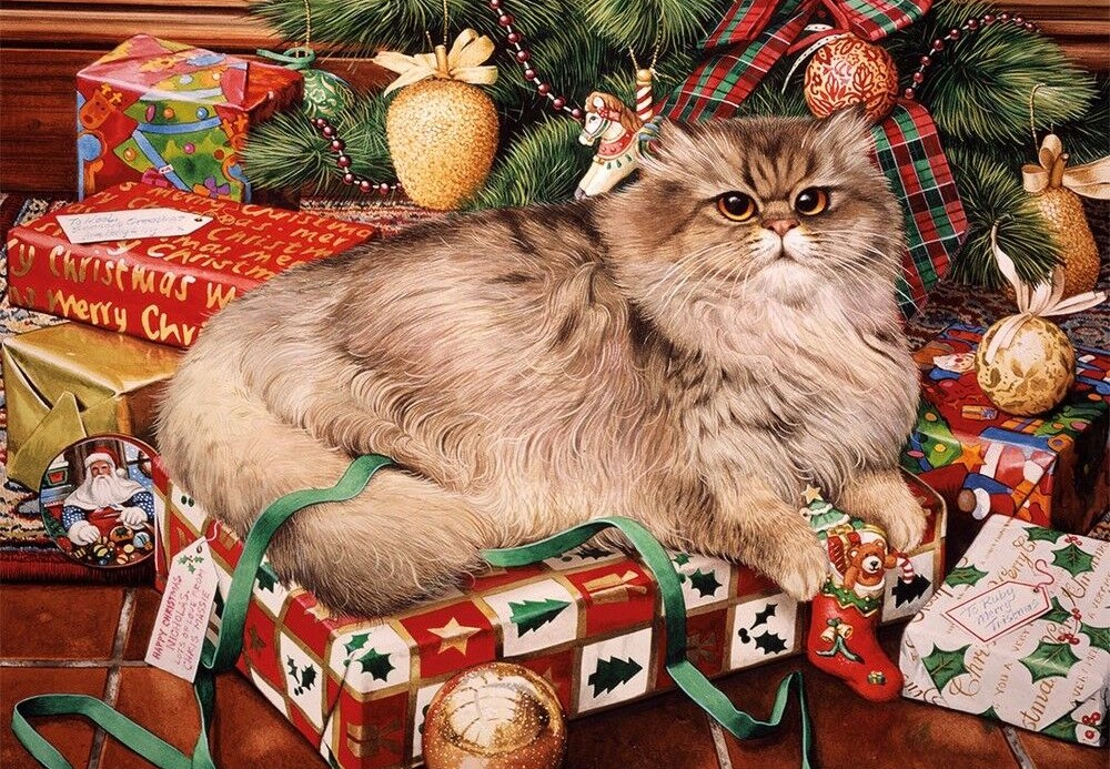 Christmas trees, ribbons and all manner of shiny trinkets, it’s every cat’s dream!