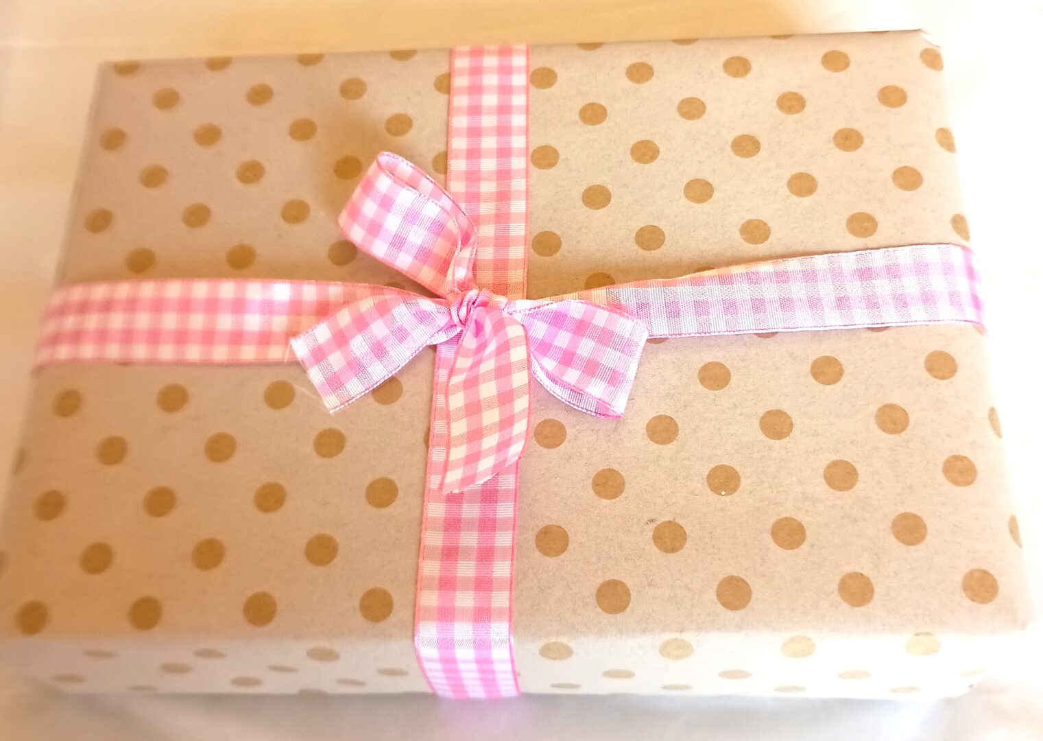Gift Wrap Combo – Paper and Ribbon – Kraft Dots & Gingham Pink