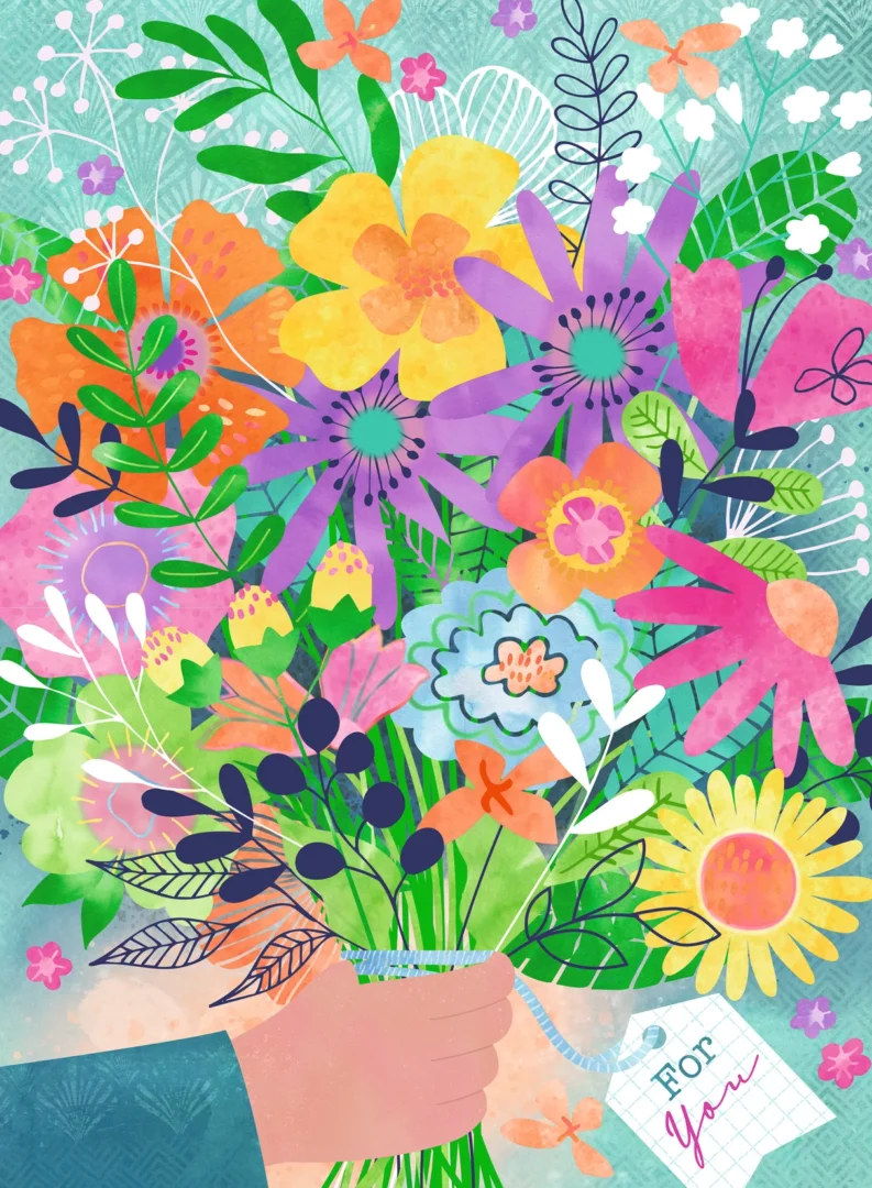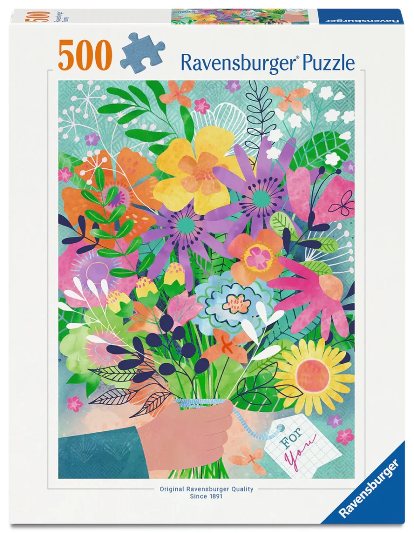 Brighten your day with this Ravensburger 500-piece jigsaw puzzle, featuring a stunning bouquet of colourful flowers. Each precisely cut piece brings to life the rich detail of blossoms arranged in a joyful display, accented with the heartfelt message For You.