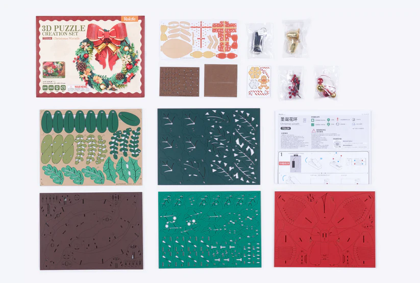 Robotime Rolife – Christmas Wreath DIY 3D Wooden Puzzle Creation Set (252 Pieces)