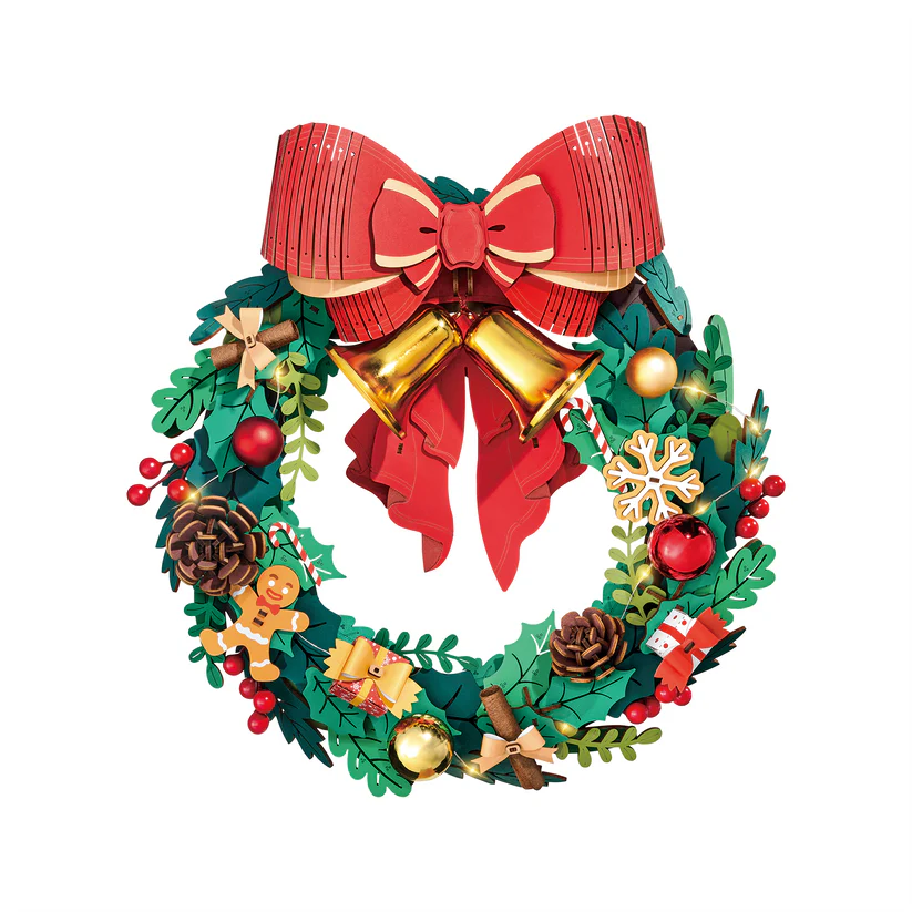 Deck the halls with the Rolife Christmas Wreath DIY 3D Wooden Puzzle. This festive light-up holiday decoration combines the timeless charm of a Christmas wreath with the hands-on joy of a wooden puzzle. The kit lets you build a stunning, LED-lit wreath that adds a cozy glow to your seasonal decor.