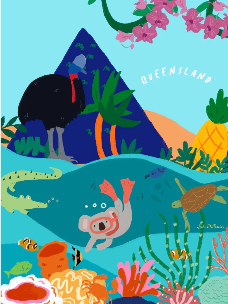 Suki’s artwork exudes warmth and joy and reflects the places she has travelled around Australia. Her pieces will be available in both 500 pieces and our 99 piece micro puzzles.